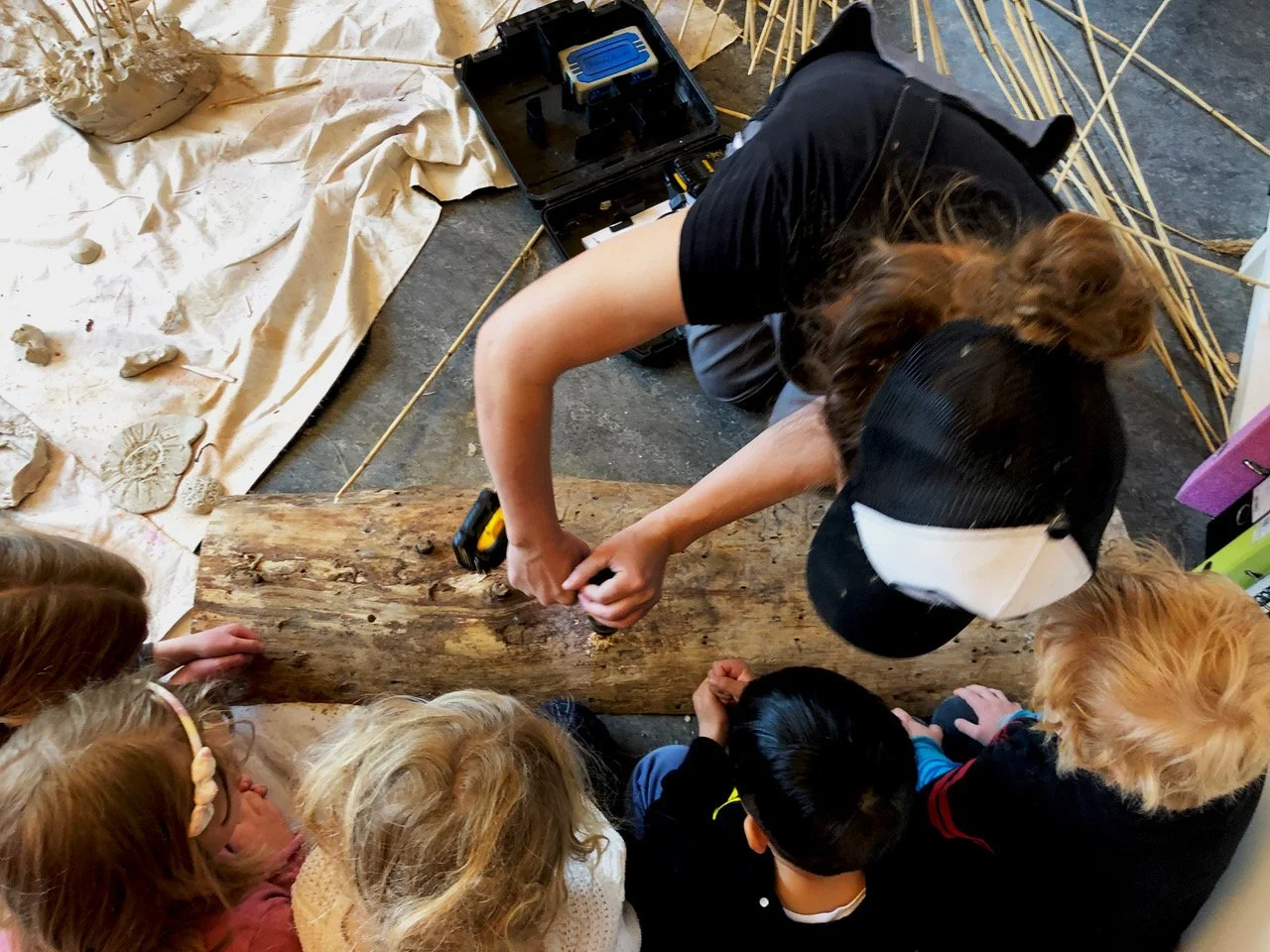 Gjennom workshopen får deltakerne tre inn i kunstnernes arbeidsrom og på denne måten inkluderes rett inn i en kunstnerisk prosess. Kunstnerne inntar en skapende og formidlende rolle, samtidig som de støtter og bistår når barna har behov for hjelp.