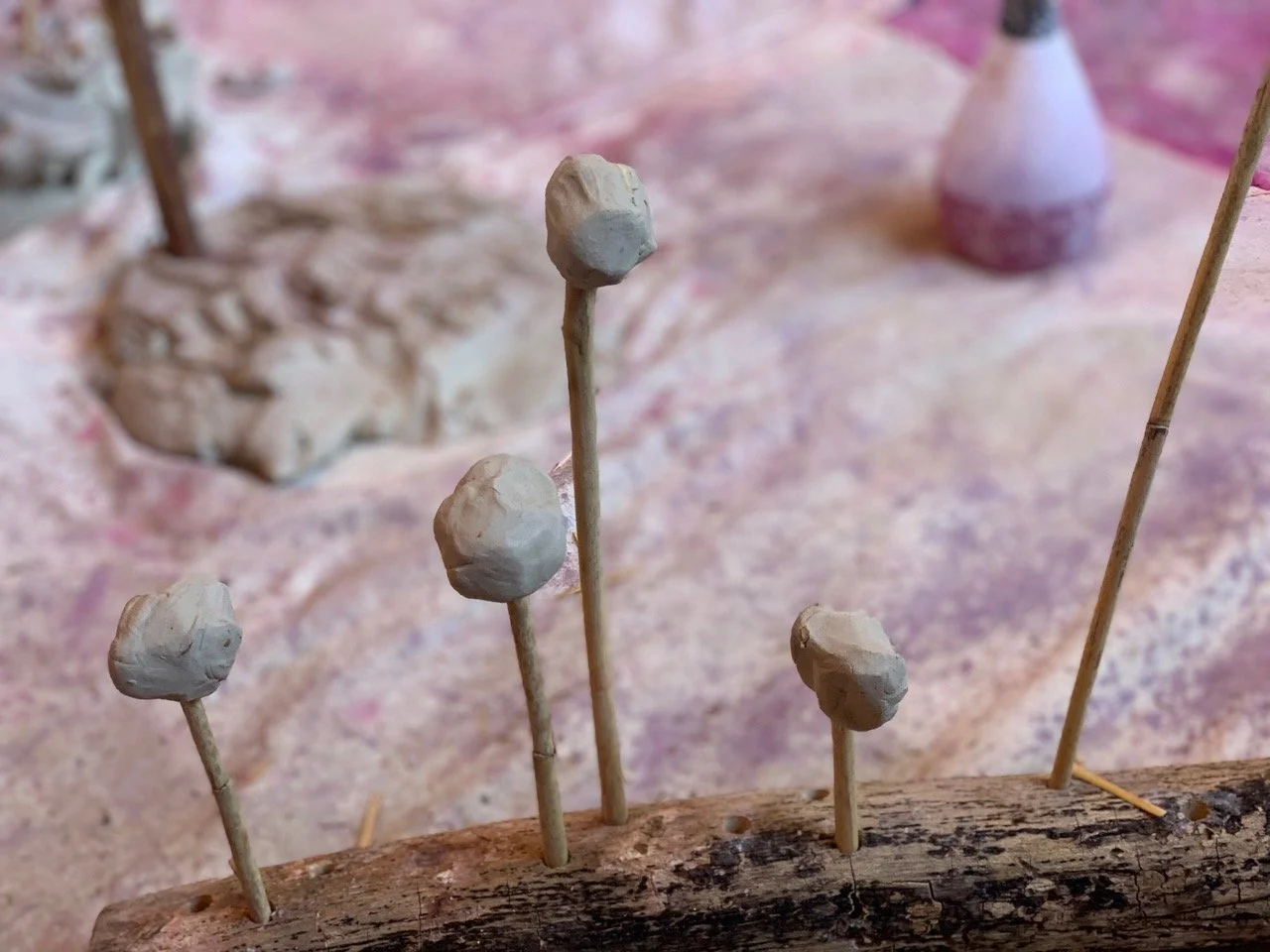Denne helgen forvandler billedkunstnerne Line Sanne og Marit Silsand scenerommet på Elefantteatret til et atelier fylt med ulike organiske materialer. Sanne og Silsand inviterer til en samskapende workshop med naturmaterialer, for barn i alderen 1 - 6 år. Sammen med kunstnerne får barn og voksne leke med og skape organiske skulpturer og installasjoner med bruk av materialer som trevirke, siv, stein, leire, vann, papir, papp, gress, jord, plantefarger og tekstil. Det legges opp til at barna, med deres nysgjerrighet og lekende, kroppslig tilnærming, får mulighet til å undersøke, re- og dekonstruere på deres egne premisser og ut ifra deres egen kompetanse. I workshopen legges det opp til tett samspill mellom kunstnerne og barna, slik at barnas stemmer og uttrykksformer kommer til syne gjennom den skapende handlingen.