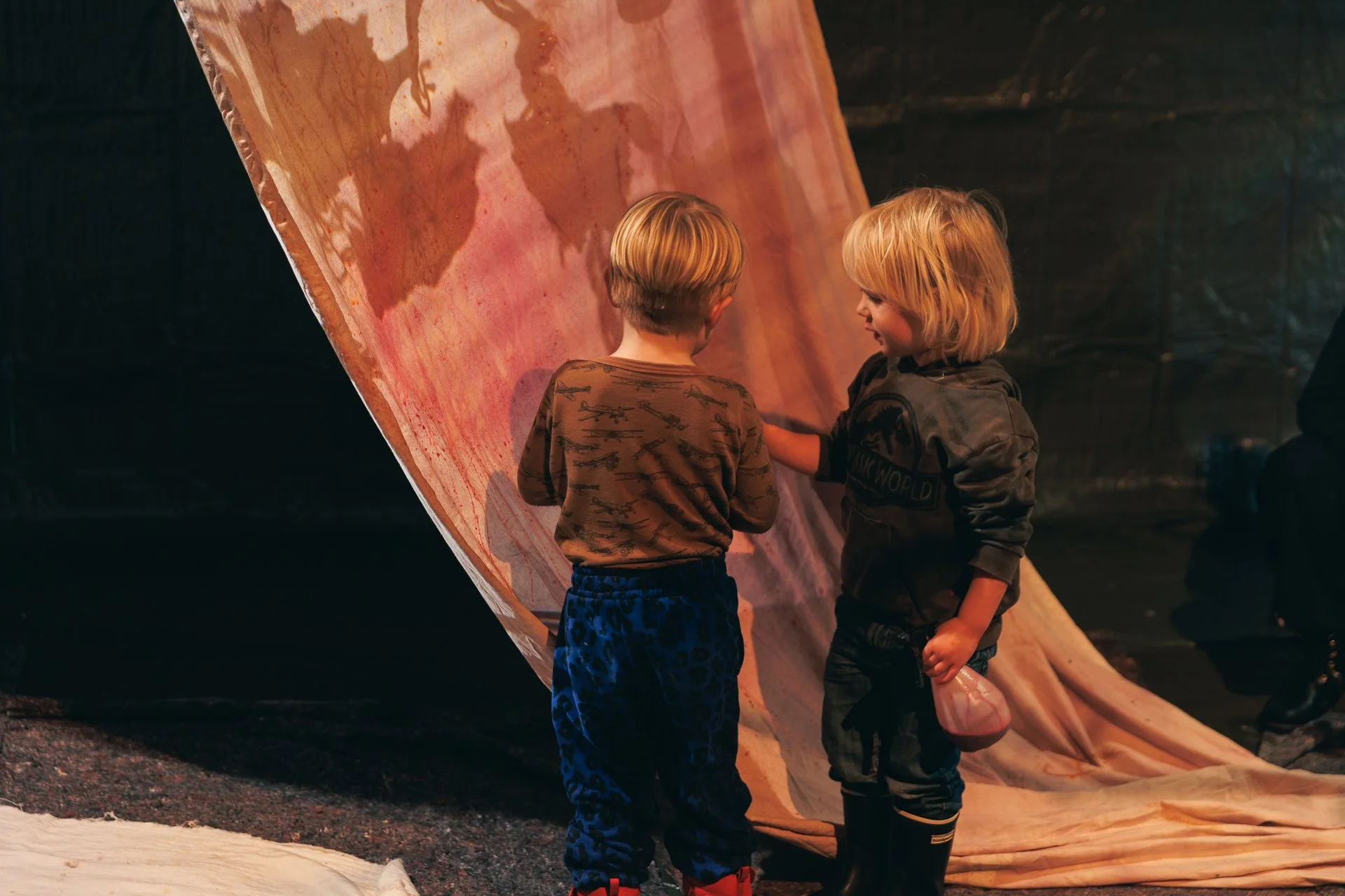 På slutten av uken vil teateret være fylt med ulike kunstinstallasjoner fra barnehagene som har deltatt! Disse kunstinstallasjonene blir grunnlaget for lørdagens familieverksted, som avsluttes med en felles visning av hva vi har gjort og vært sammen om.